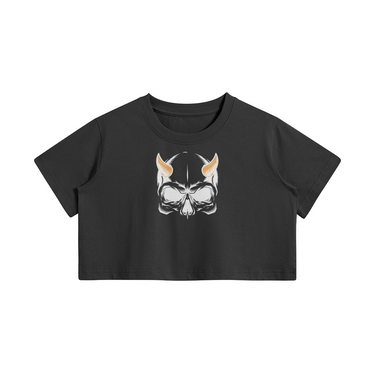 Inspirado en el arte arcano "Necro Cursed" presenta un cráneo icónico, despojado de mandíbula y coronado con dos cuernos sutiles, evocando una estética que es tanto poderosa como misteriosa.