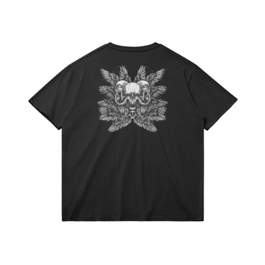 Rinde homenaje a lo divino y misterioso con este diseño. Este arte conceptualiza una deidad poderosa, fusionando lo celestial y lo macabro.